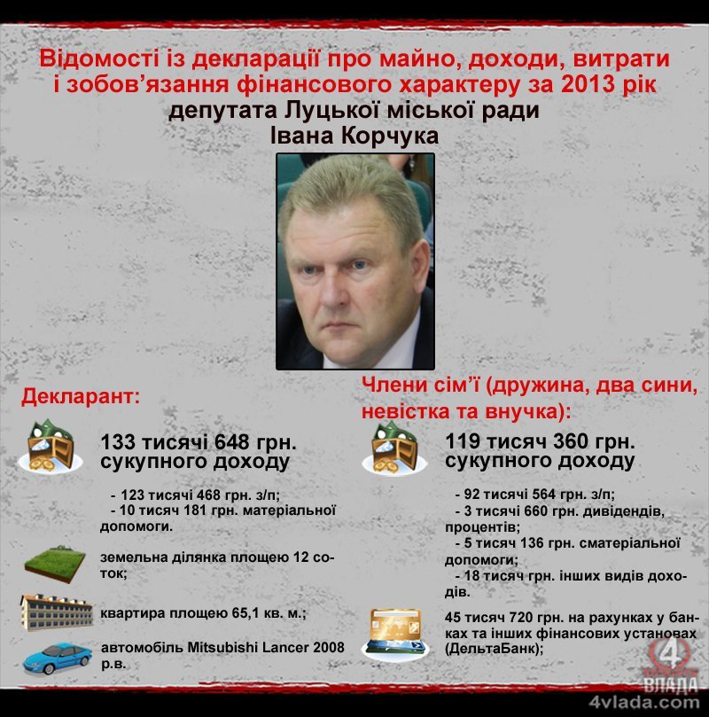 Частина депутатів Луцької міської ради не декларує ні нерухомості, ні транспортних засобів, а дехто не має навіть і доходів, проте є й такі, які мають по кілька будинків, гектари землі та дорогі автомобілі. Окремі ж депутати умудряються за повної відсутності доходів сплачувати кількатисячні кредити.