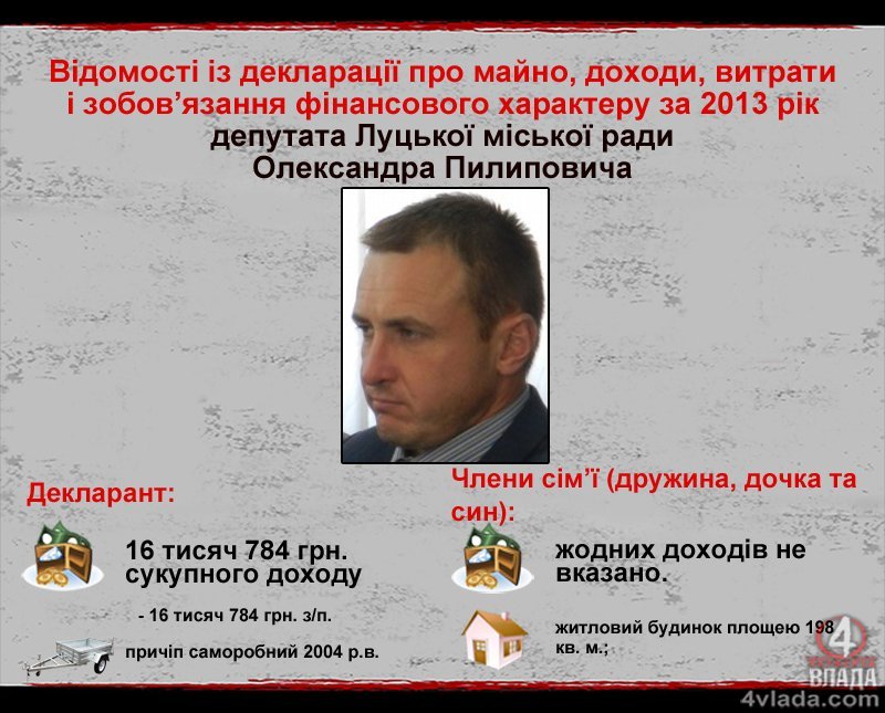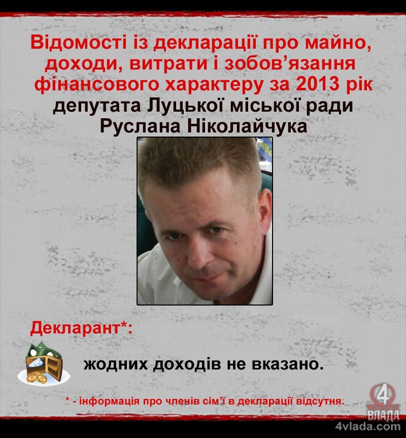 Разом з тим, ще один депутат Луцької міськради Григорій Пустовіт оприлюднив свою декларацію ще під час перебування на посаді голови Волинської ОДА.