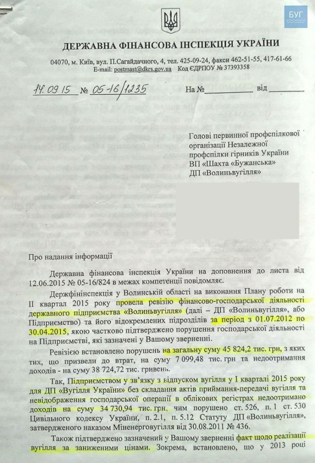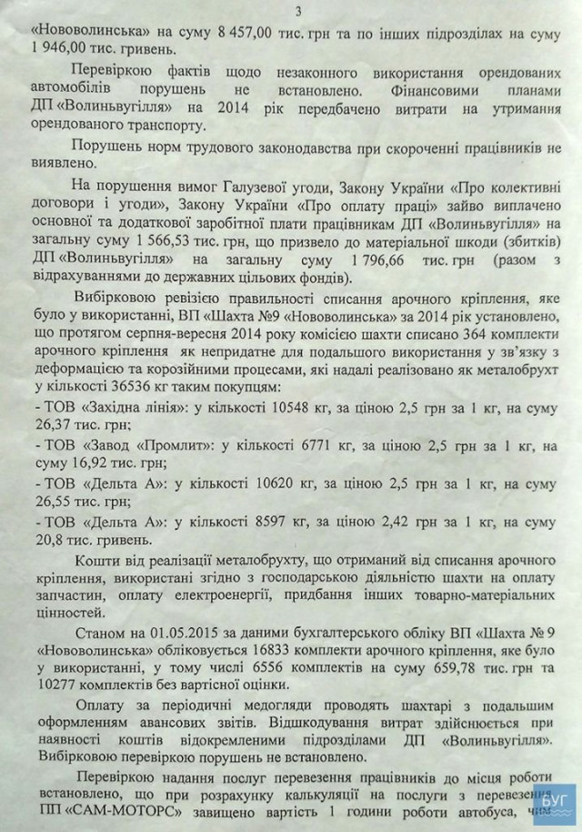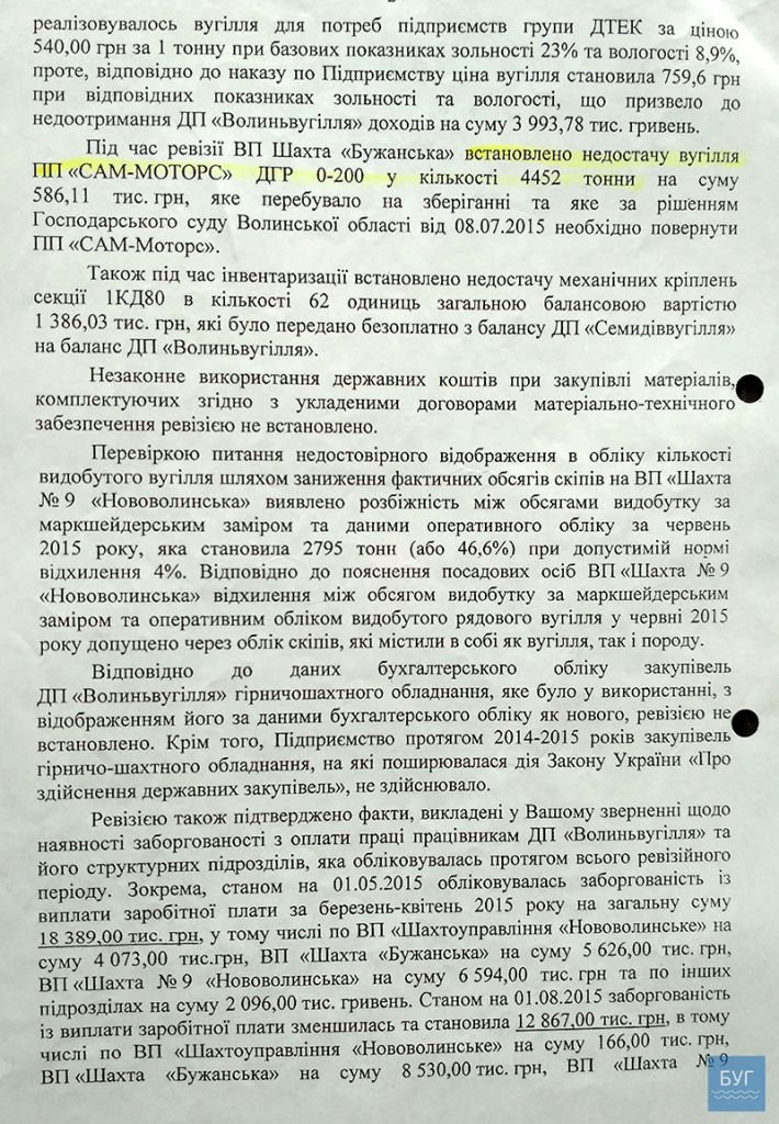 Перелік документів, в яких зазначений факт зловживань на ДП “Волиньвугілля”, отримало видання БУГ. Відповідні документи редакція оприлюднила.