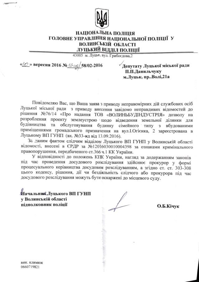 У результаті, заяву щодо неправомірних дій службових осіб Луцької міської ради зареєстровано у Луцькому відділі поліції та за фактами відкрите кримінальне провадження.
