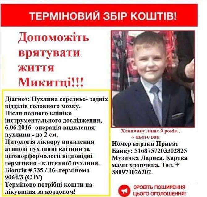 А хто не встиг побувати на ярмарку, можуть переказати кошти на рахунок мами Микити на картку: 5168757203302825 Музичко Лариса.