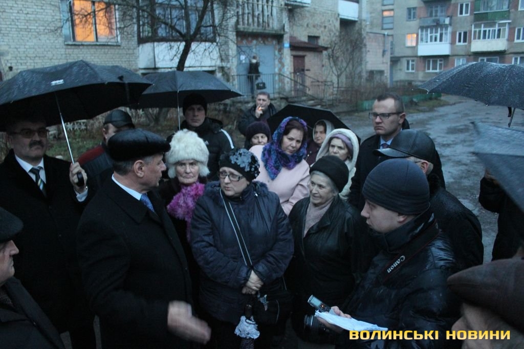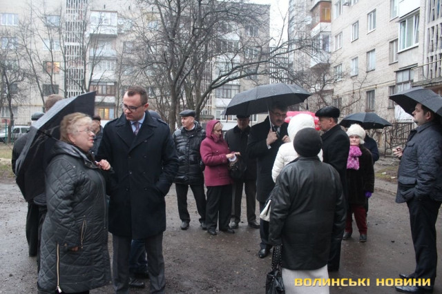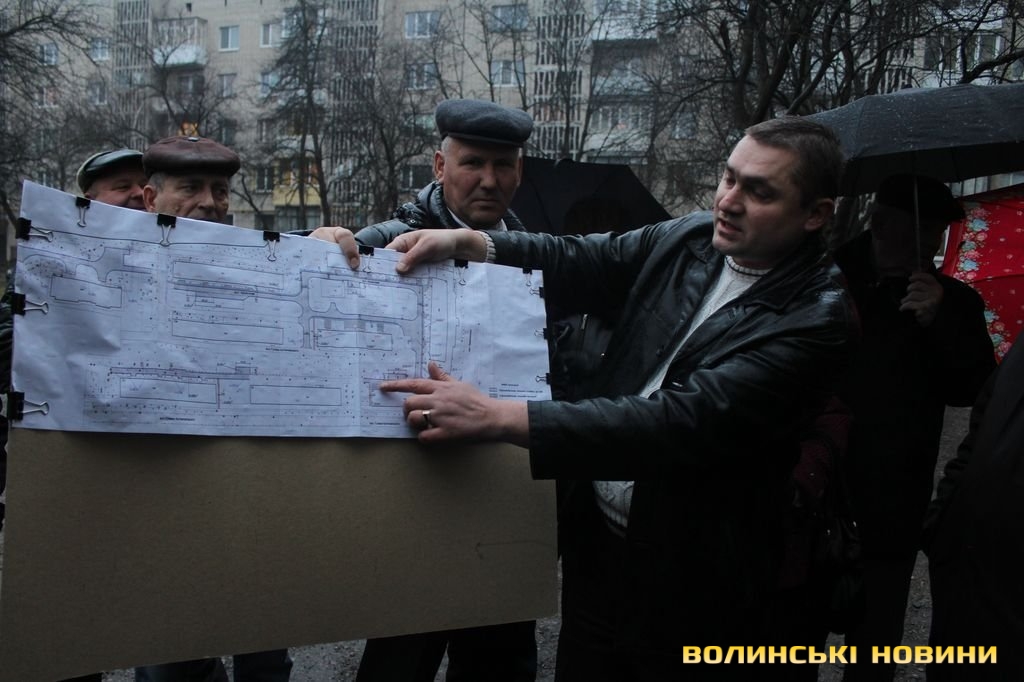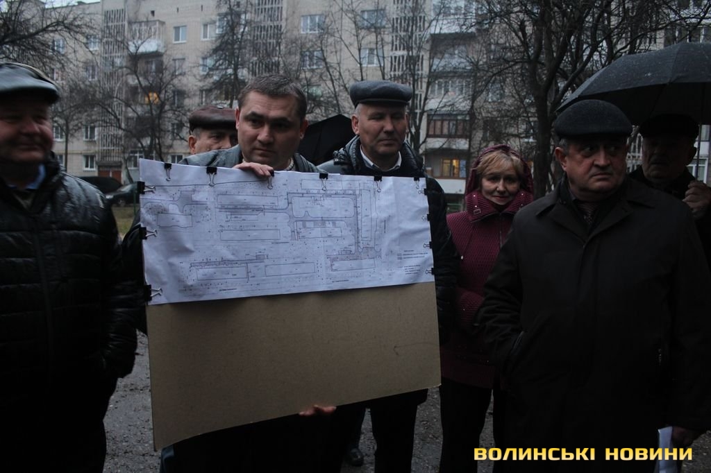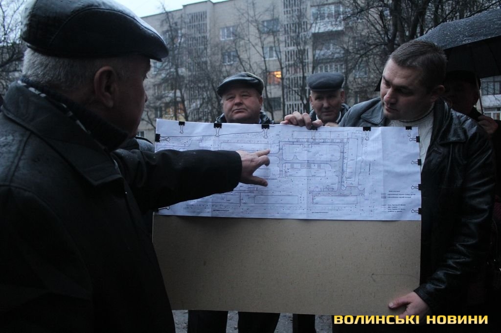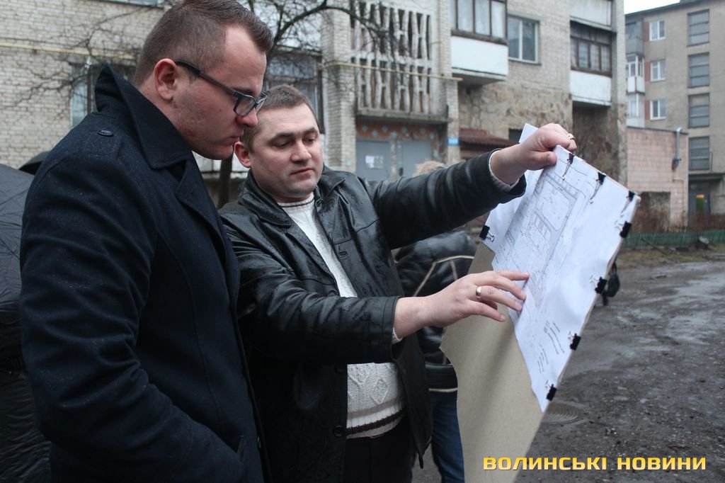 План комплексного ремонту презентували мешканцям двору 27 лютого.Епопея з ремонтом прибудинкової території, яка знаходиться у вкрай занедбаному стані, тягнеться вже не один рік. Член депутатської групи «Новий Луцьк» Ігор Поліщук, в межах округу якого і знаходяться ці двори, розповідає, що місцеві жителі просили відремонтувати їх ще з осені 2013 року. Ще тоді, півтора року тому, депутат пояснював колегам та міській владі, що в окремих дворах повністю зруйноване асфальтове покриття і жителі будинку змушені добиратися до власних домівок ледь не на човнах.