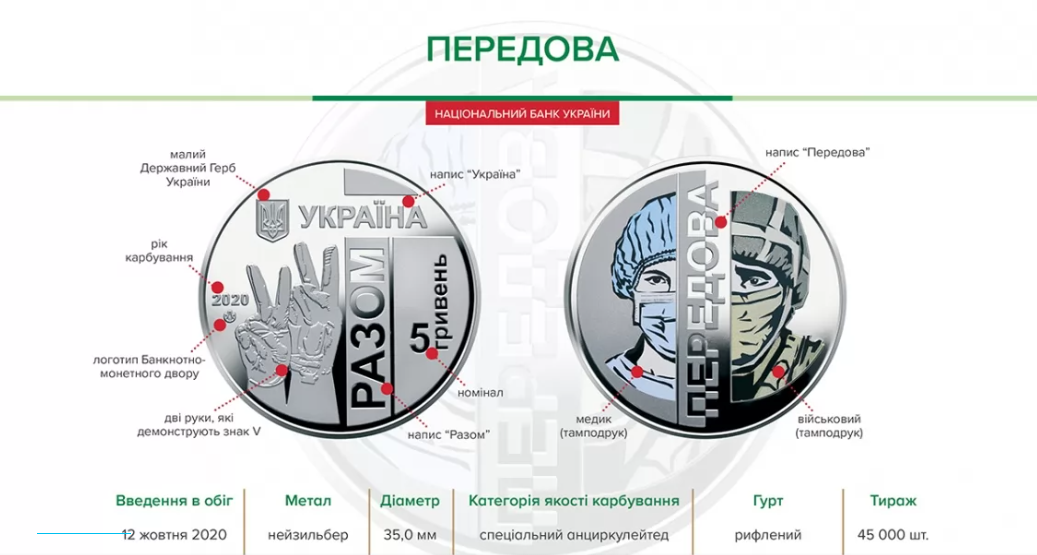 Національний банк ввів в обіг пам’ятну монету «Передова» номіналом 5 гривень.