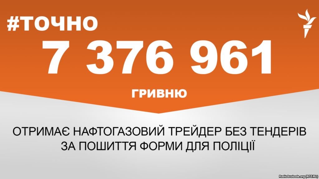 Кілька регіональних управлінь та відділів Національної поліції України протягом грудня 2016 року - березня 2017 року уклали контракти без тендерів на закупівлю форми та аксесуарів із приватним підприємством «Компанія «Надежда» на загальну суму 7,3 мільйона гривень. Така інформація міститься на офіційному порталі аналітики Business Intelligence ProZorro, передає #Точно, проект Радіо Свобода.