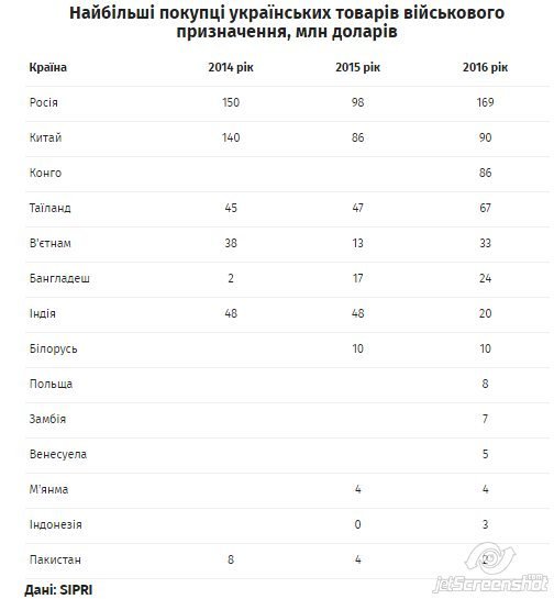 У минулому 2016 році найбільшим покупцем української продукції військового призначення стала країна-агресор Росія.