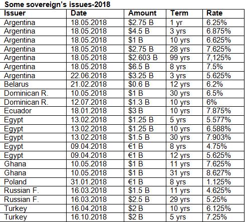І зверніть увагу, коли суверени проводили розміщення. Майже всі — у лютому-травні цього року, коли було відносно сприятливе вікно. За розміщеннями Аргентини, Туреччини та Єгипту можна скласти ємну картинку, як змінювалася дохідність бондів, що розміщуються, протягом 2018 року. Скажімо, у жовтні Анкара позичила на п'ять років уже значно дорожче, ніж в квітні на десять. Чому Україна не розмістилася навесні, запитайте у колишнього міністра фінансів», - пише експерт.