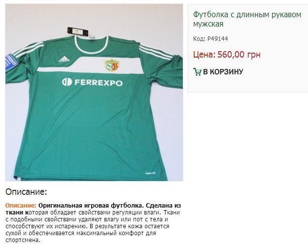 Так, однією із суттєвих складових фінансового живлення футбольних клубів є продаж клубної атрибутики. Там, де футболом заробляють собі на життя, ціни на атрибутику мають бути логічними і реальними - бо інакше в них, цінах, просто не буде сенсу, - йдеться на сайті Футбол.ua.