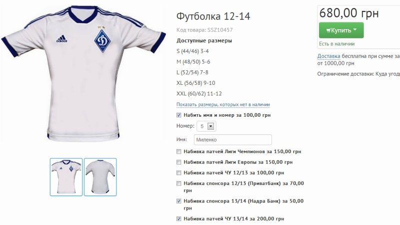 А як у нас? Я вирішив прогулятись інтернет-магазинами вітчизняних клубів (представників УПЛ). Вибір робив простий - форма поточного сезону - або найновіша з тих, що є, - мого, XL-івського розміру, з улюбленим номером і моїм же прізвищем.