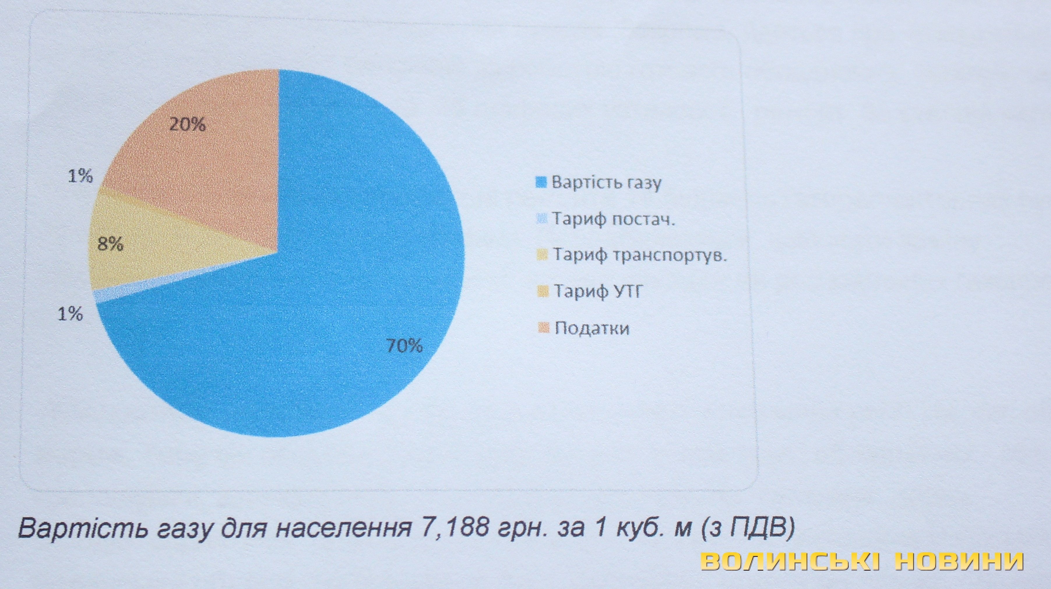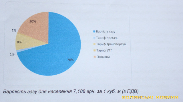 Так, у період з 1 травня по 30 вересня ціна на газ для побутових потреб становить 7,188 гривень за 1 метр кубічний. Із цих коштів ПАТ «Волиньгаз» отримує 69 копійок, як плату за транспортування і постачання природного газу.Ціну газу та тарифи на його транспортування встановлює Національна комісія, що здійснює державне регулювання у сфері енергетики та комунальних послуг (НКРЕКП).