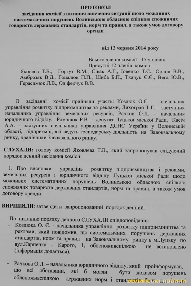 Зауважимо, комісія для вивчення питання про облспоживспілку складалася з 15 чоловік - це представники влади, профільних управлінь міськради, підприємці й представники громади громадських активістів міста.