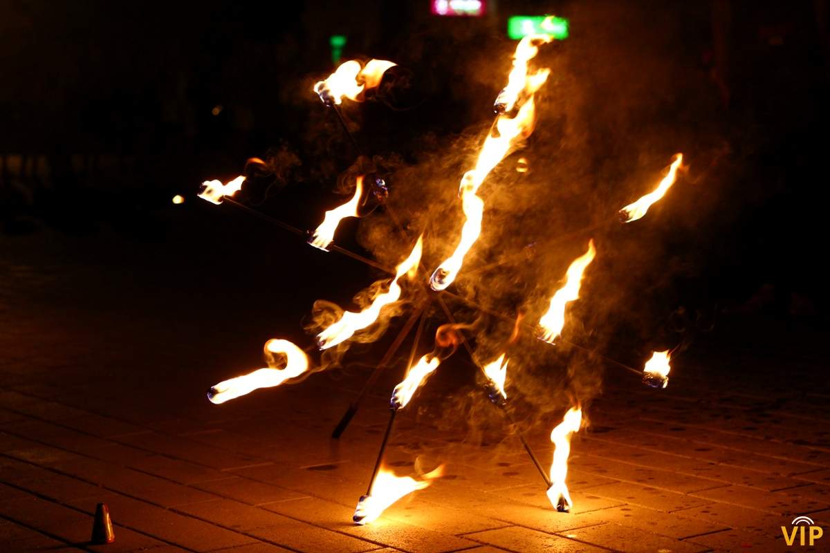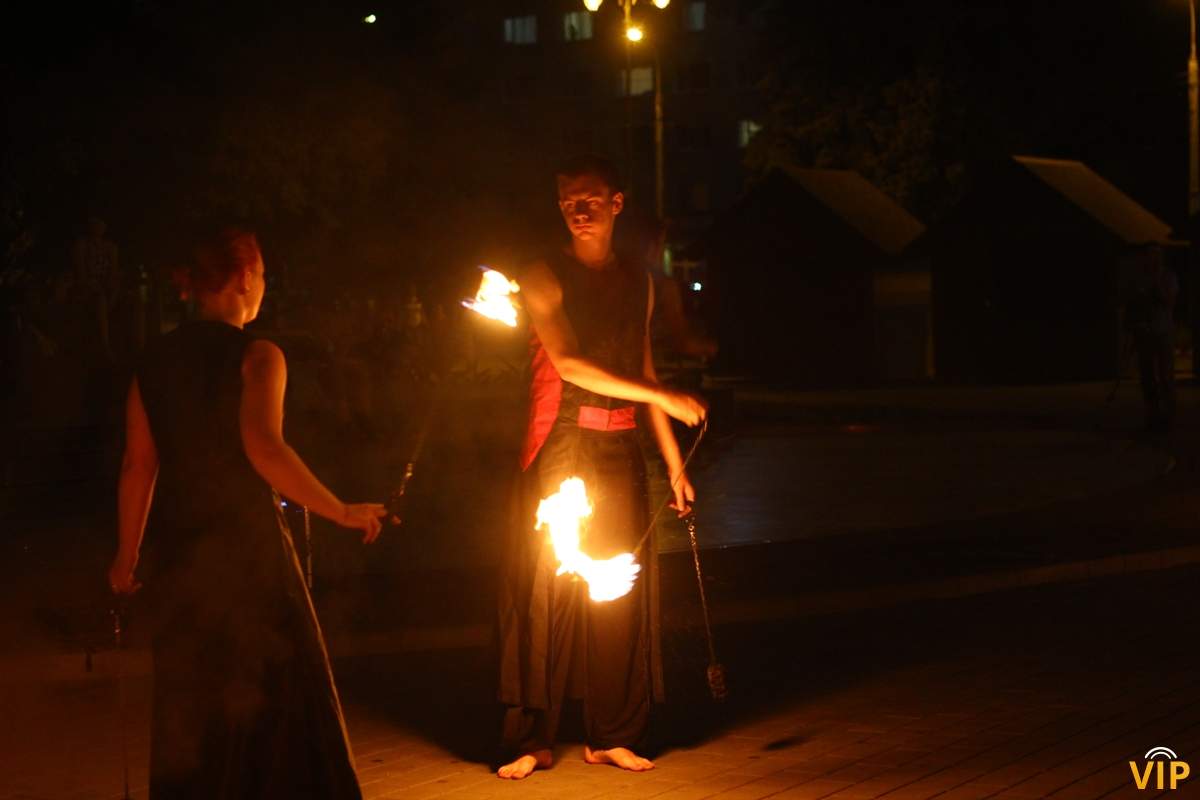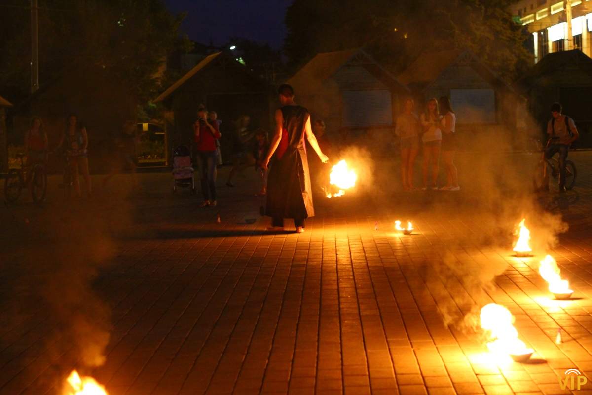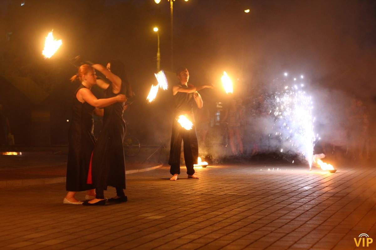 Тож артисти влаштували вражаюче шоу з вогнем у центрі міста. Чимало лучан із захопленням спостерігали за дійством, особливо малеча.