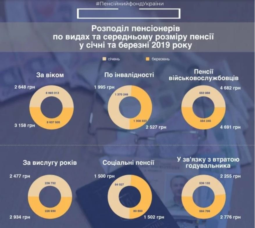 Згідно з повідомлення прес-служби Пенсійного фонду, найбільш помітне підвищення відчули українці, які отримують пенсію за інвалідністю. Таких в Україні – 1 мільйон 308 тисяч 323 особи. На початок 2019 року їхня середня пенсія становила 1 тисяча 995 гривень, а у березні – 2 тисячі 527 гривень. Середнє підвищення – 532 гривні.