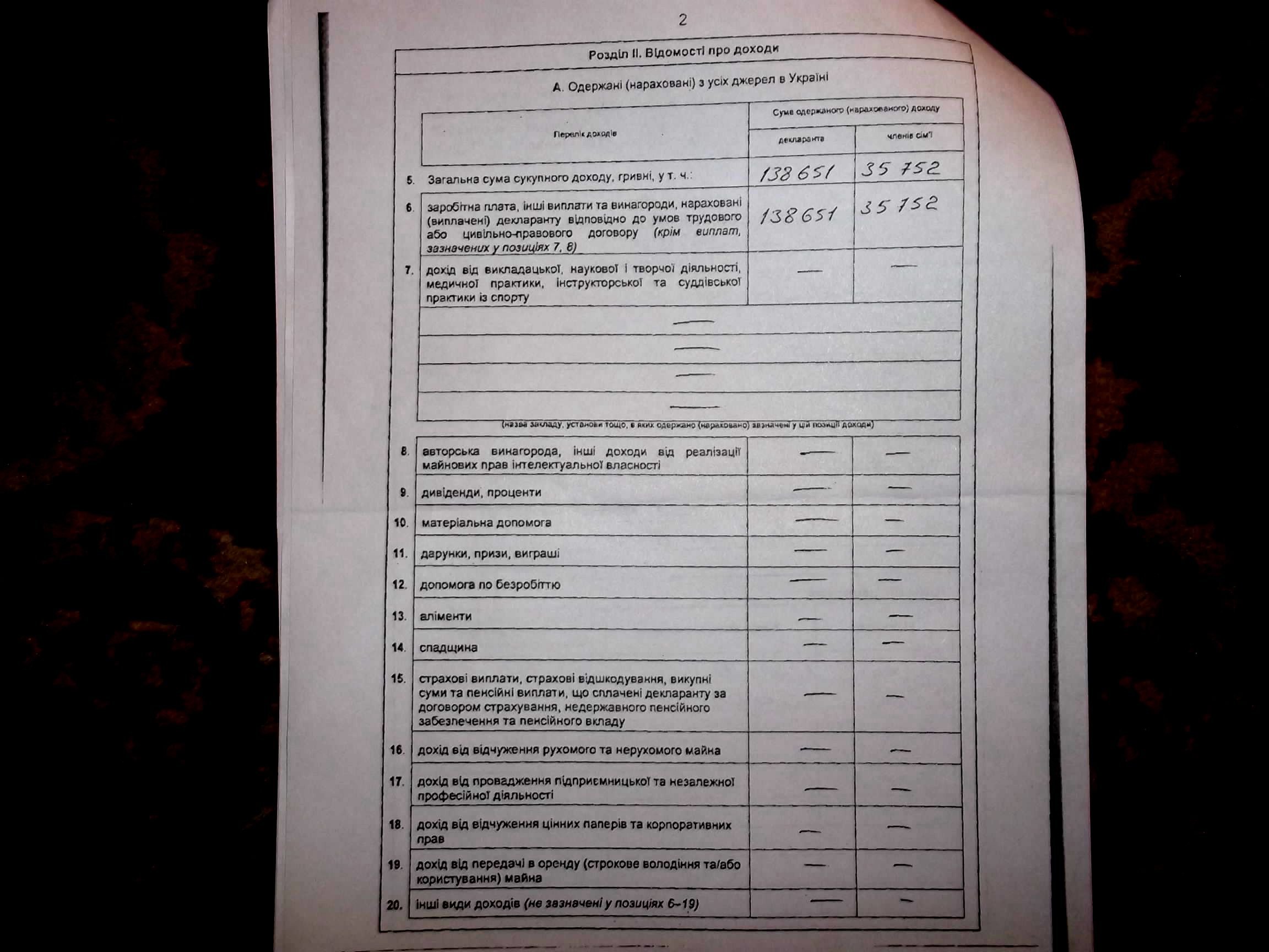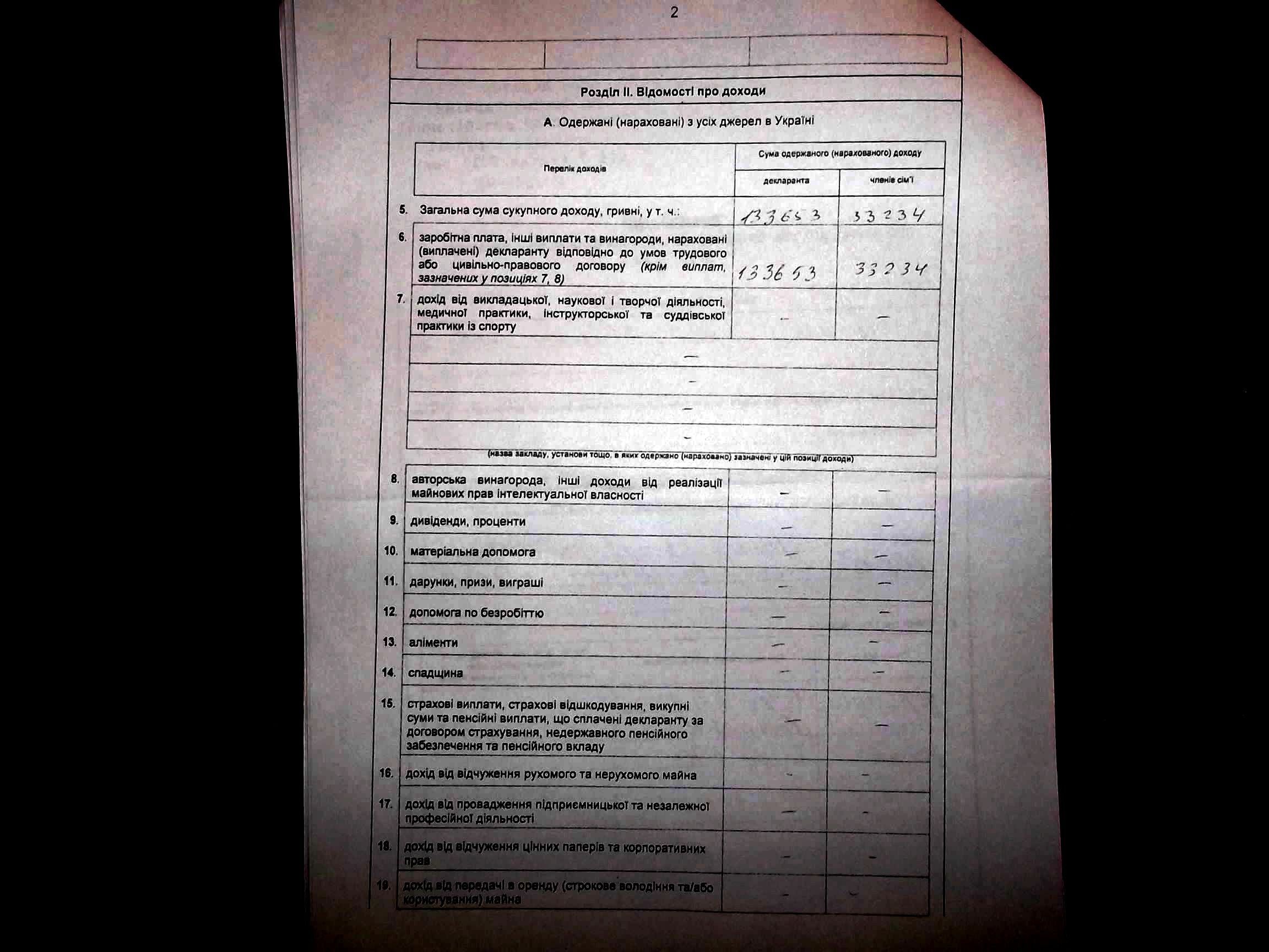 У дружини прибуток у вигляді заробітку збільшився із 31, 3 тисячі гривень до 35,7.