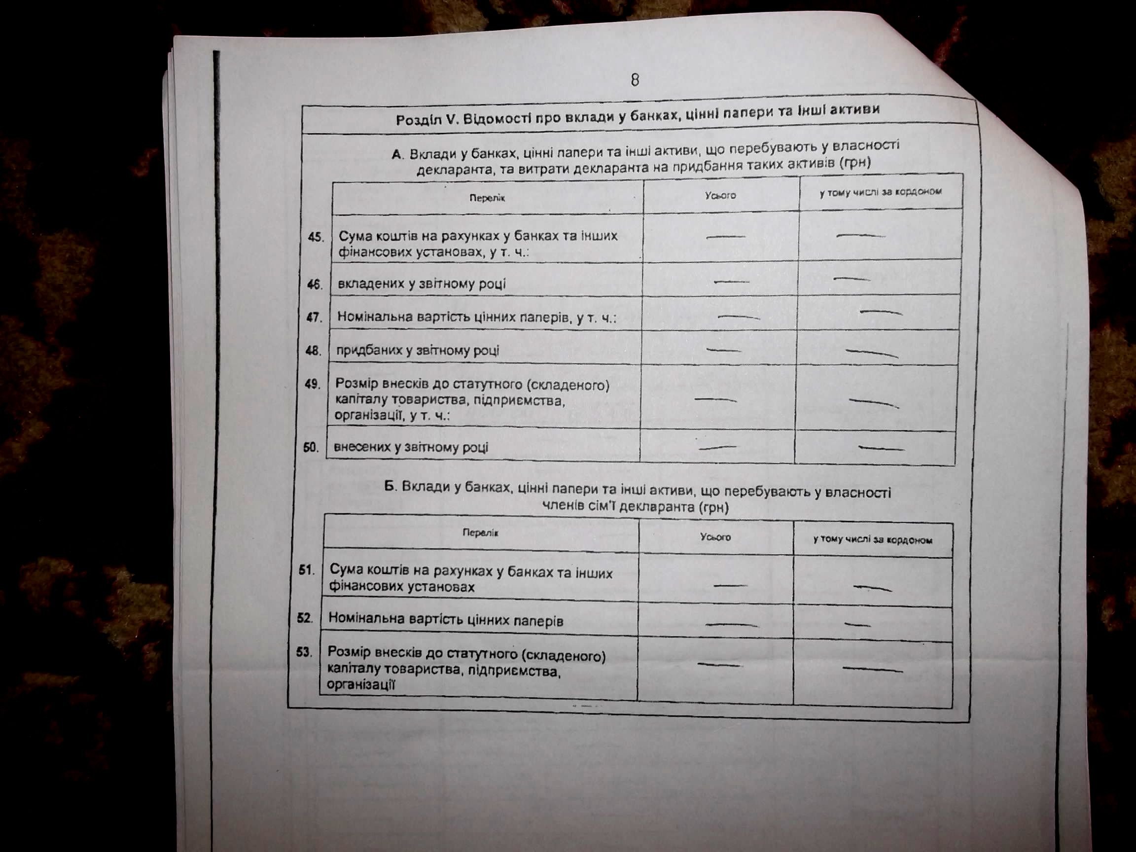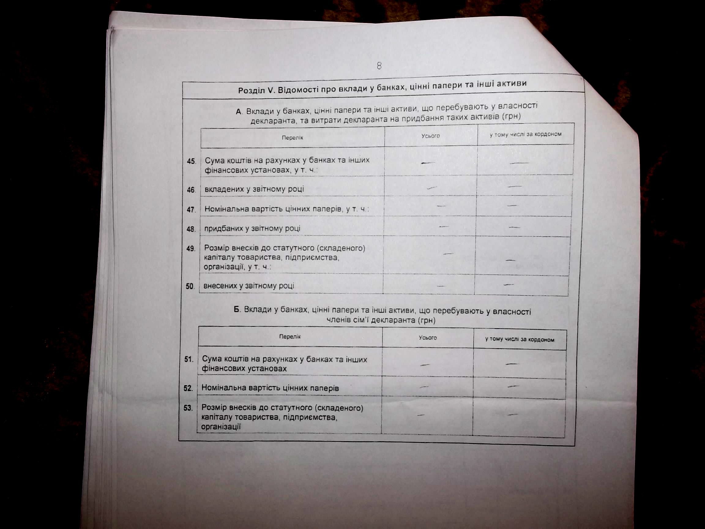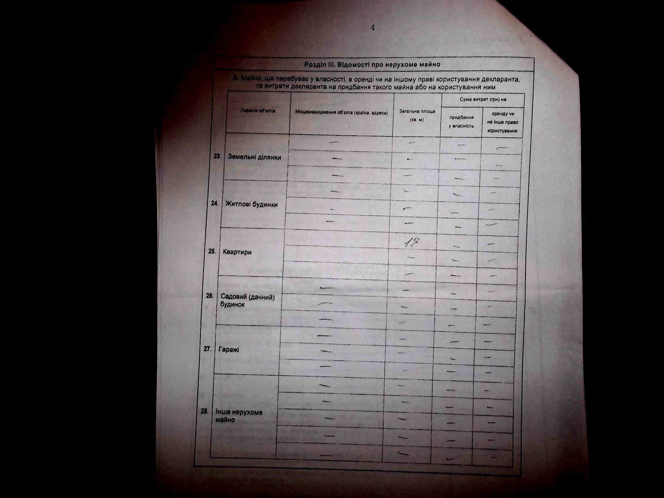 18 метрів квадратних, відповідно. Вкладів у банках – 0. Витрати на обслуговування – невідомі. Фінансові зобов’язання декларанта і членів родини – див. декларацію.