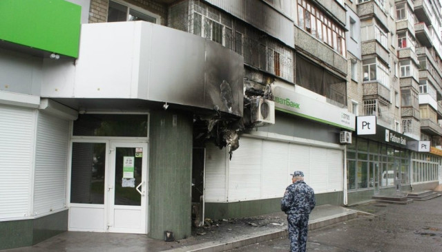 Зі слів працівників банку, підпал стався приблизно о 03:45. "Це акт вандалізму", - так прокоментували причину пожежі в банку. "Вогонь знищив банкомат, вхідні двері, вивіску і коридор, а також пошкодив балкон квартири на другому поверсі", - йдеться в повідомленні.