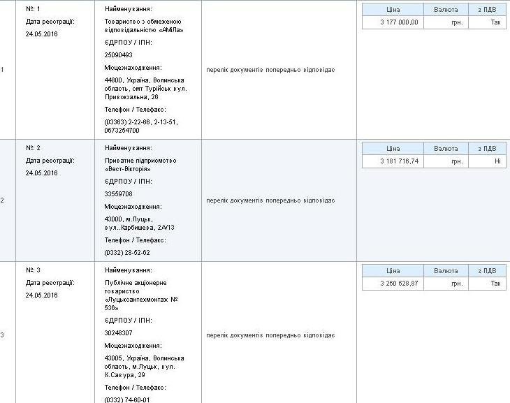 Згідно з рішенням конкурсної комісії, переможцем обрали приватне підприємство «Вест-Вікторія», яке за 3 181 716 гривень зобов’язалось виконати будівельні роботи.Термін поставки, за умови фінансування з місцевого бюджету, у повному обсязі ІV квартал 2017 року.