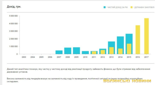 Згідно з даними сервісу YOUCONTROL, ПП «Волинянин» бере участь в державних закупівлях з 2011 року. Частка фінансів, що були отримані від забезпечення державних установ в доходах підприємства, поступово збільшувалася і вже з 2016 року вона становить 100% доходів підприємства.Аналітики сервісу пояснюють: висока залежність від тендерів вказує на залежність від ходу їх проведення, політичної ситуації та інших потенційно корупційних складових.