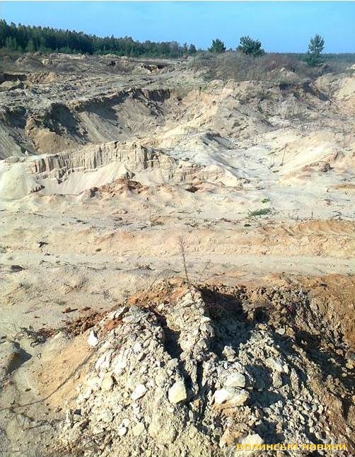 На Волині виявили незаконний видобуток піску на площі близько гектара