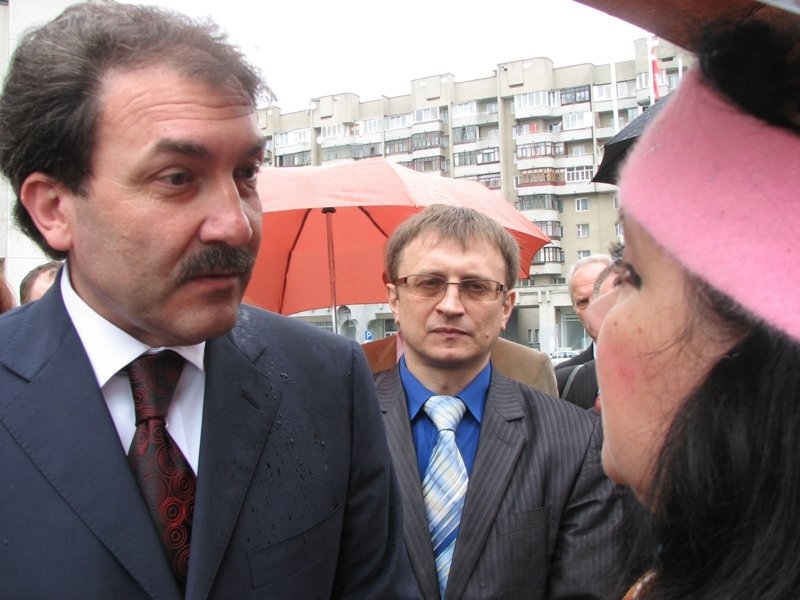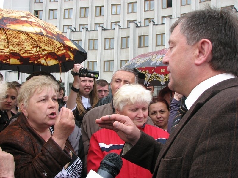 Близько 12-ї години до мітингувальників вийшли заступник голови ВОДА Олександр Башкаленко, луцький міський голова Богдан Шиба, його заступник Петро Гоцалюк, керівник Федерації профспілок у Волинській області Іван Карпомиз.