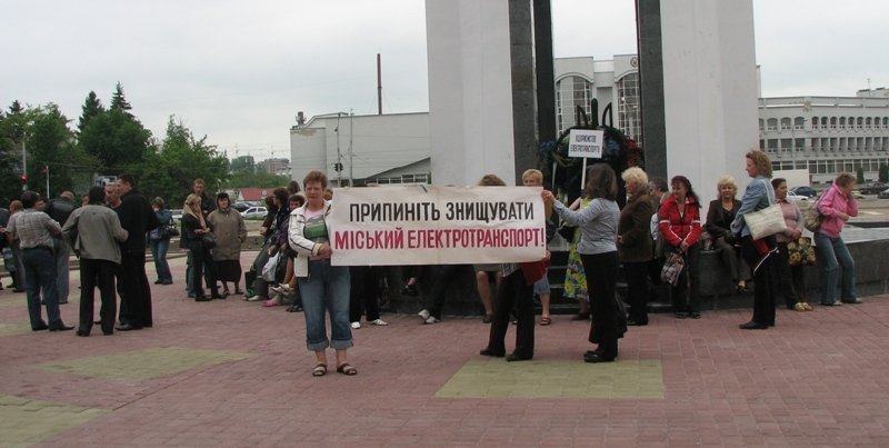 Кілька десятків працівників Луцького підприємства електротранспорту, які декілька днів тому оголосили безстроковий страйк 14 травня пікетували приміщення Волинської облдержадміністрації.