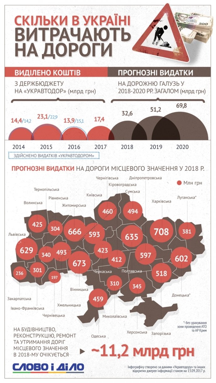 Аналітики порталу «Слово і Діло» розібралися, які кошти держава має намір виділити на їх ремонт і будівництво в 2018 році.