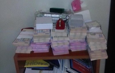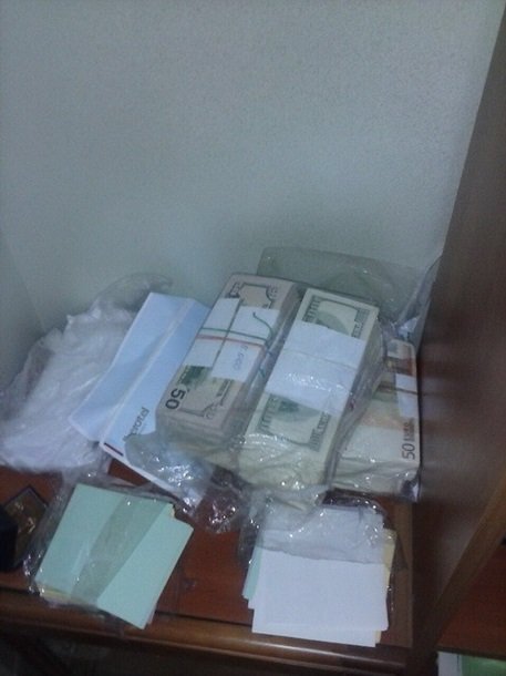 На фото, які опублікували силовики, видно пачки євро, доларів і гривень.Як повідомлялося, Харченка затримали на отриманні хабара у 170 тисяч євро. У прес-центрі СБУ повідомили, що чиновник через посередника-адвоката вимагав гроші від професора. Тимчасовий виконувач обов'язків ректора і адвокат-посередник були затримані в робочих кабінетах після отримання частини сумою сто тисяч євро.