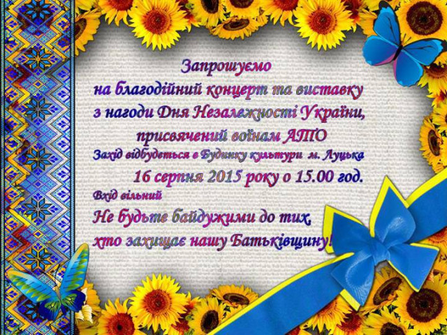 Так, сьогодні, 16 серпня о 15:00 годині у Палаці культури відбудеться благодійний концерт на підтримку Федотова Сергія Анатолійовича, якому потрібна операція на нозі в Німеччині після поранення в Іловайськму котлі.