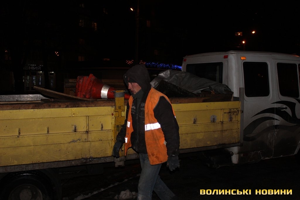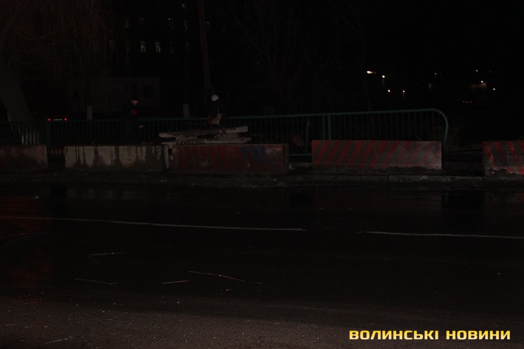 Сьогодні робітники зняли опалубку з колесовідбою - це метрова бетонна загорожа мосту між дорогою і пішохідною частиною. На питання «Чи у Новий рік лучани вже ходитимуть по реконструйованому мості» - лише знизують плечима. Бо навіть не знають, коли будуть робити колесовідбій на іншій стороні дороги. Для мосту зробили уже перила, вони на оцинковці, за кілька днів їх уже зможуть приварити.