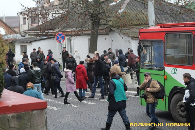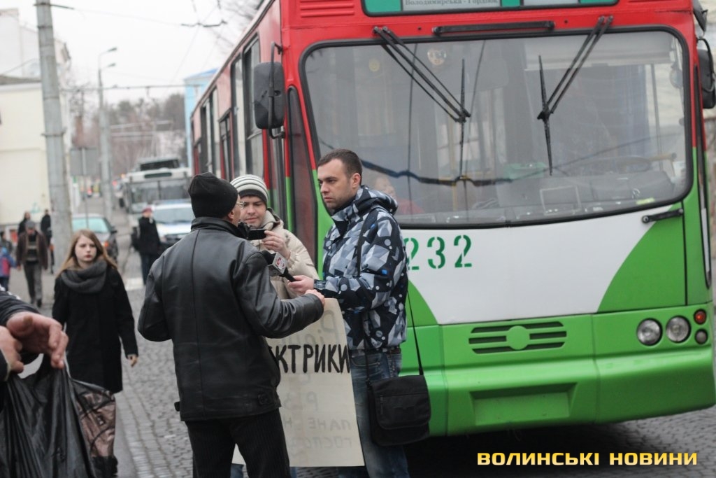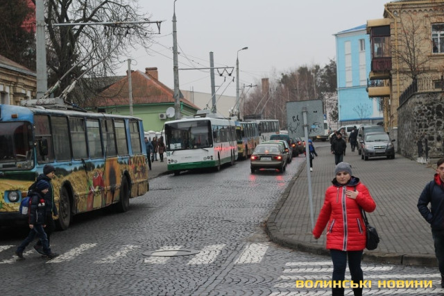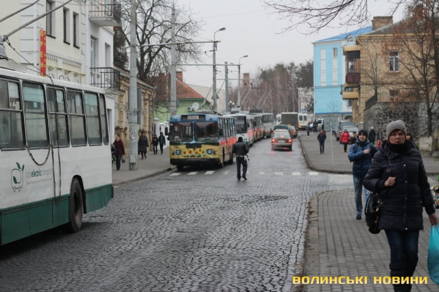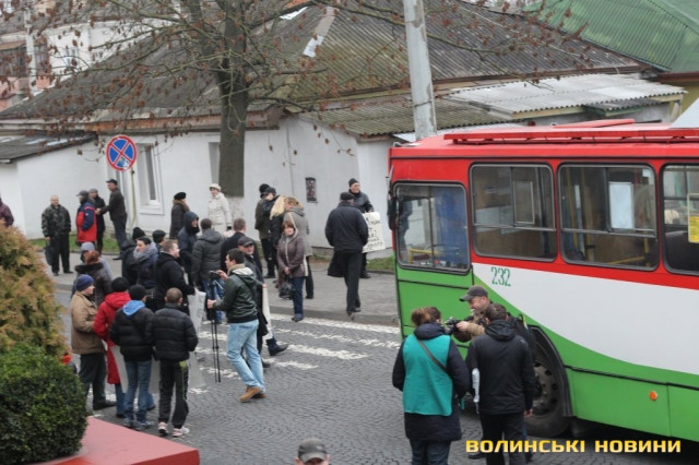 Рух вулицею Богдана Хмельницького перед будівлею міськради перекрили працівники Луцького підприємства електротранспорту, які протестують через невиплату заробітної плати.