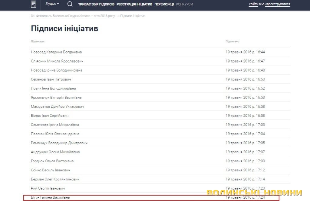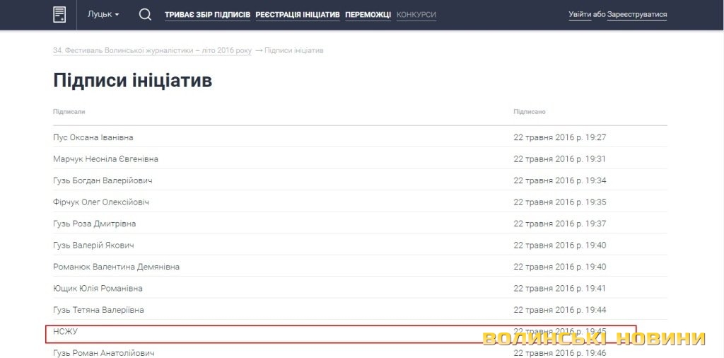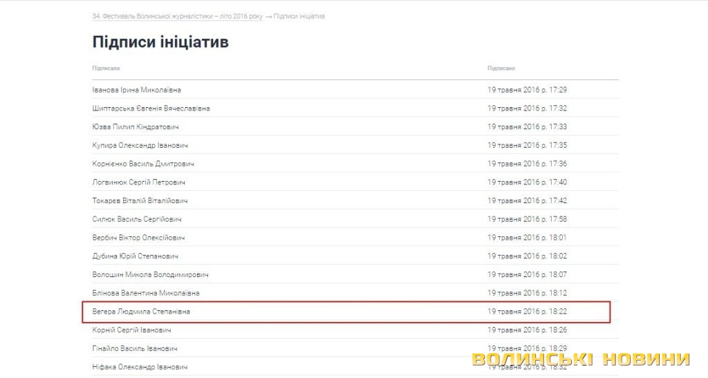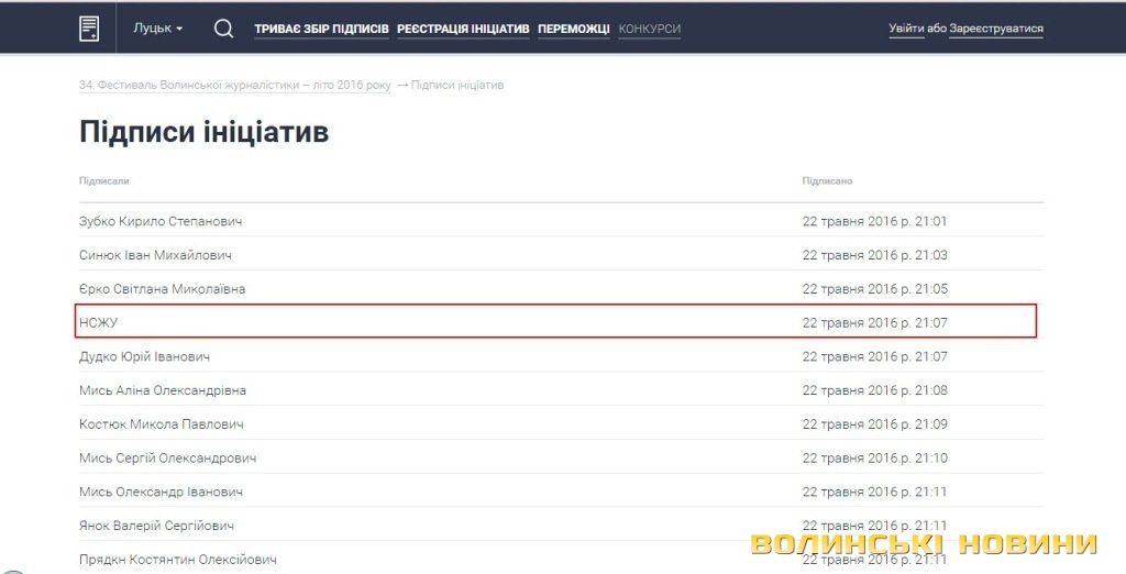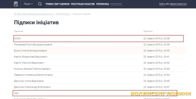 Так, з-поміж ініціатив, які можна назвати переможцями, виділяється така: Фестиваль Волинської журналістики (літо 2016 року), автор – С.П. Шегда.