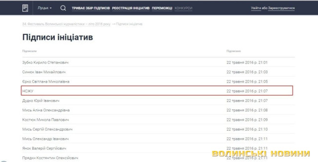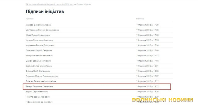 Фестиваль Волинської журналістики, до програми якого входять майстер-класи, концертна програма і фуршет – один із фаворитів конкурсу громадських ініціатив. За бюджетний кошт журналісти планують обмінюватися досвідом і тішитися здобутками. Оскільки всі можуть побачити списки підписантів, то є й такі, хто себе там відшукав, хоч … ініціативу не підписував.
