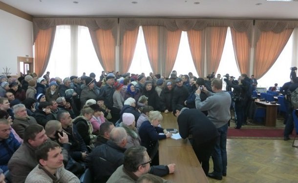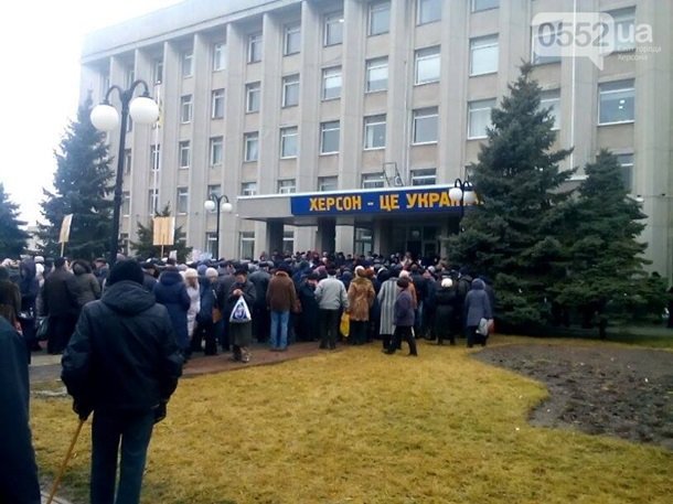 У Херсоні сьогодні, 22 лютого, на сесію міськради прорвалися учасники антитарифного мітингу, який тривав під стінами будівлі. Мітингувальники протестували проти підвищення тарифів на проїзд у громадському транспорті, повідомляє Кореспондент.