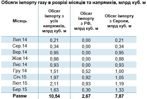 Інформація щодо обсягів імпорту з кожного напрямку надається в щомісячному розрізі: