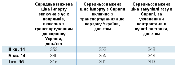 Середньозважена ціна імпортованого газу, поквартально, доларів за тисячу кубічних метрів (дол./ткм)
