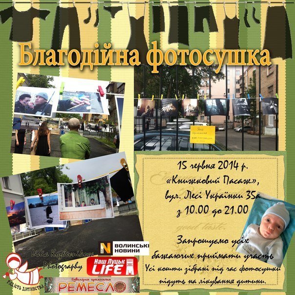 Організація «Радість Дитинства» 15 червня проводить фотосушку у центрі міста, у «Книжковому Пасажі». Організатори збирають кошти на одужання маленького Ромчика Вакулінського з Луцького району.