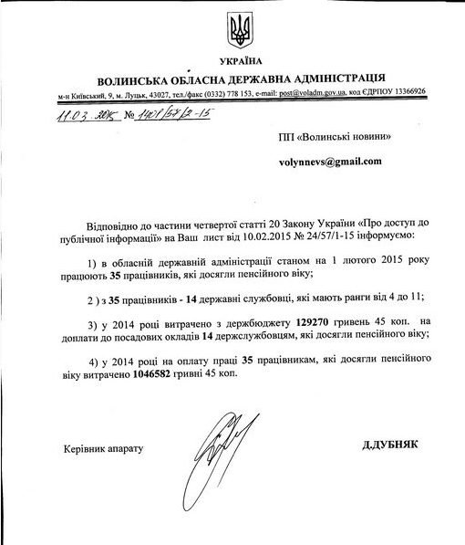 У Волинській ОДА – більше трьох десятків пенсіонерів