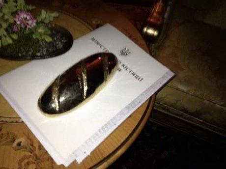 "золотого батона, про призначення якого досі гадають журналісти", то я їм відкрию таємницю, для того щоб документи приважити на столі.