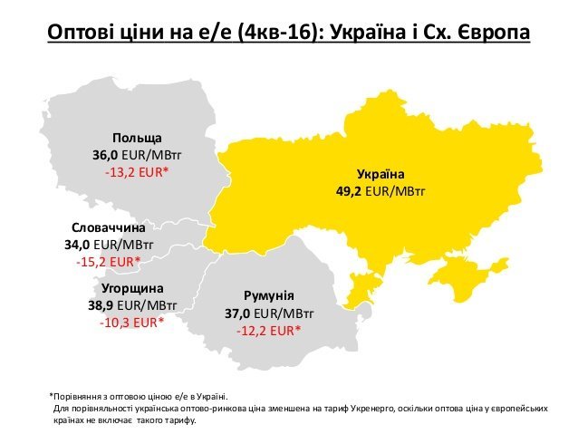 Спотова оптова ціна електроенергії в Україні на 30%-40% вища, аніж у сусідніх європейських країнах.