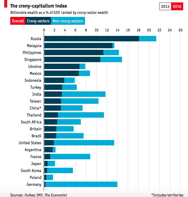 Політичні зв'язки завжди рухали торгівлю вперед. Але протягом останніх 20 років від Малайзії до Мексики так звані «корумповані капіталісти», які отримали свої статки завдяки своїм родичам і друзям в урядах, насолоджувалися «золотою ерою».