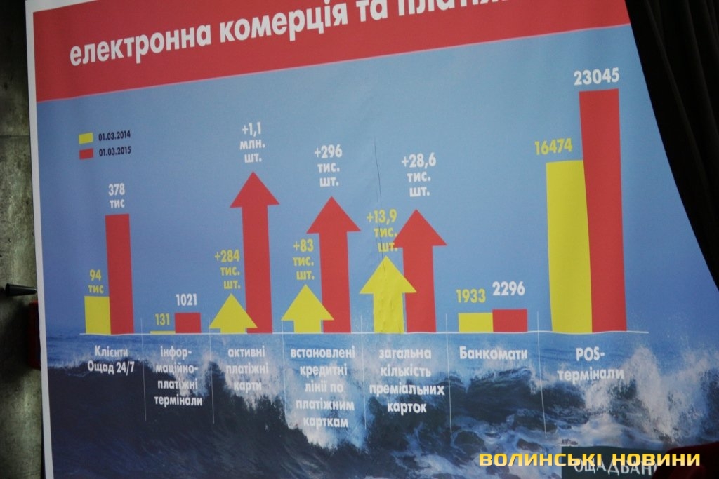 Зі слів голови правління банку, цьогоріч планують відкрити приблизно 300 відділень нового типу, фактично будуючи «банк в банку». За станом на березень минулого року відкрили 14 відділень нового типу, а протягом року відкрили 107 таких відділень. Він запевнив, що цей процес буде дуже помітним до кінця року – за його результатами Ощадбанк матиме понад 300 відділень нового типу (більшість українських банків, що входять до першої десятки, мають по 200-250 відділень). Відтак, клієнтоорієнтованість та підвищення якості сервісу визначили основною стратегією цього року.