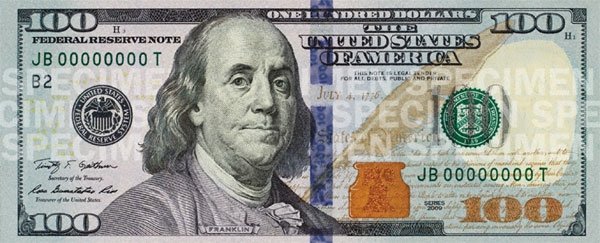 Нагадаємо, сто доларів США - найбільший за номіналом федеральний резервний квиток США з 1969 року. В даний час в обігу перебувають квитки серій 1996-2003A. На лицьовій стороні зображений Бенджамін Франклін, на зворотному - Індепенденс-хол.