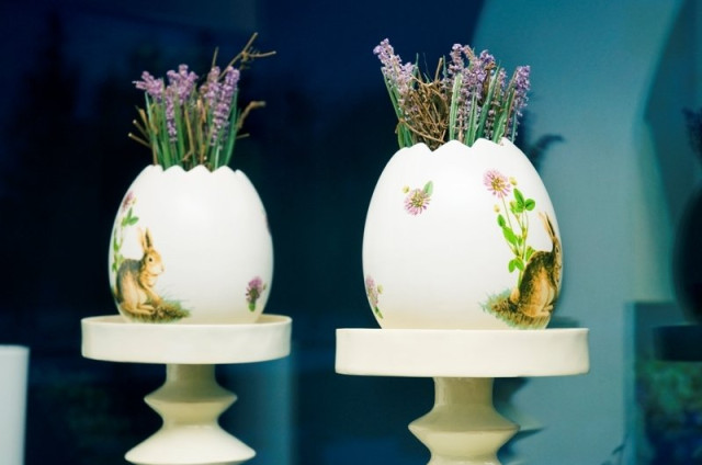 Підставки з квітами у формі писанки додадуть святковому столу весняного аромату. Вечірні Великодні привітання зігріють подарункові свічки-писанки.