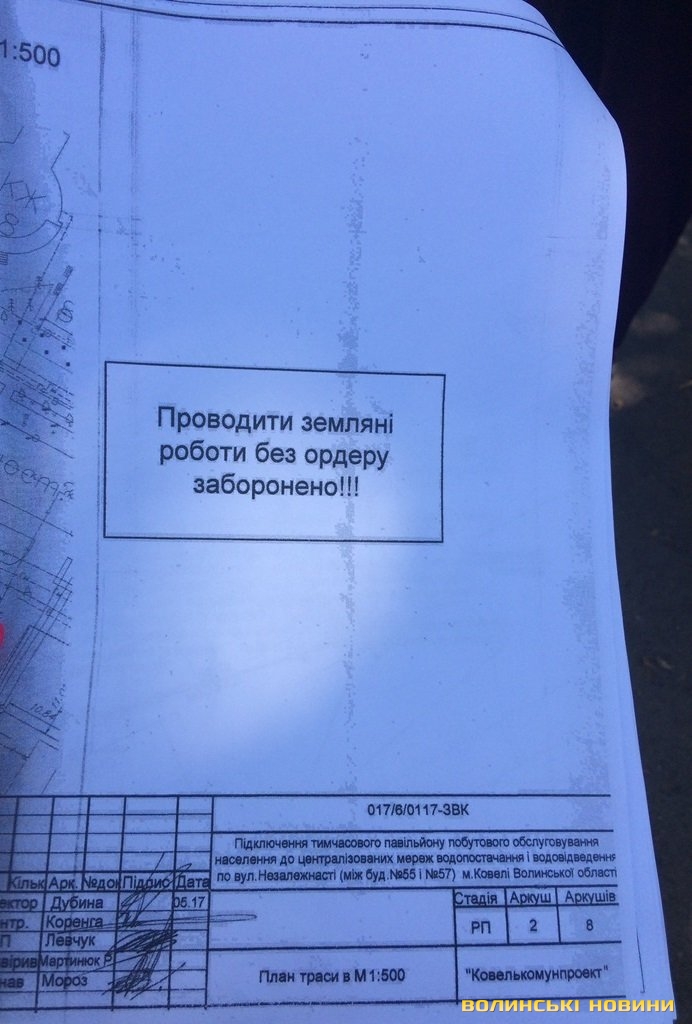 Днями владці видали ордер на проведення земляних робіт з підведення водопостачання та водовідведення до горезвісного МАФу, які майстри почали здійснювати 27 червня. Ці дії викликали обурення жителів, які заблокували проведення робіт.Для вирішення питання та зняття соціальної напруги на місце подій прибули депутати Ковельської міської ради та члени тимчасової контрольної комісії по даній споруді Ігор Пініс (УКРОП), Галина Стасюк (УКРОП) та Ірина Роїк (БПП Солідарність).