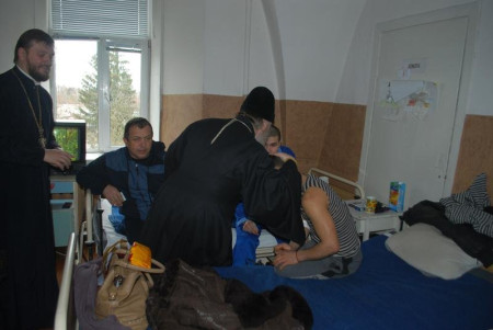 Опісля владика Нафанаїл та священнослужителі єпархії пройшли у відділення госпіталю. Заходили у кожну палату, владика кожного солдата – теперішнього чи колишнього, які тут нині лікуються, обнімав і благословляв. Щире спілкування з духовним пастирем, його благословіння тішили і радували, а піднесений дух також значною мірою сприяє одужанню.