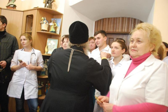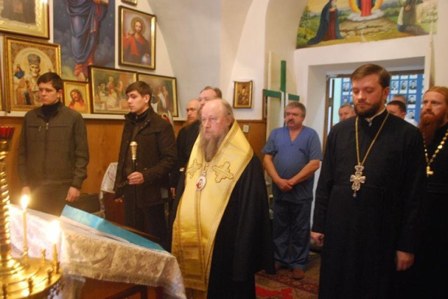 У госпітальному храмі владика Нафанаїл відслужив молебень за здоров'я пацієнтів та медичного персоналу. Йому співслужили секретар Волинської єпархії УПЦ протоієрей Валентин Марчук. Голова єпархіального інформаційно-просвітницького відділу протоієрей Валентин Мачрук, настоятель госпітального храму протоієрей Євгеній Поліщук, ієромонах Ілля (Вишневський) та помічник владики Нафанаїла ієромонах Афанасій. У кожне з госпітальних відділень владика Нафанаїл подарував волинську ікону Богоматері. Іконки з його благословенням отримали медики закладу та його пацієнти.