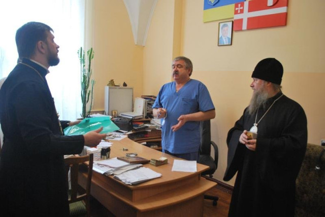 Під час свого пастирського візиту вікарний єпископ Волинської єпархії УПЦ Нафанаїл вручив начальнику госпіталю Олександру Хоменку пожертву від єпархії: 20 тисяч гривень. Ці кошти, які повідомив начальник госпіталю, використають для придбання закладу електрокардіографа.