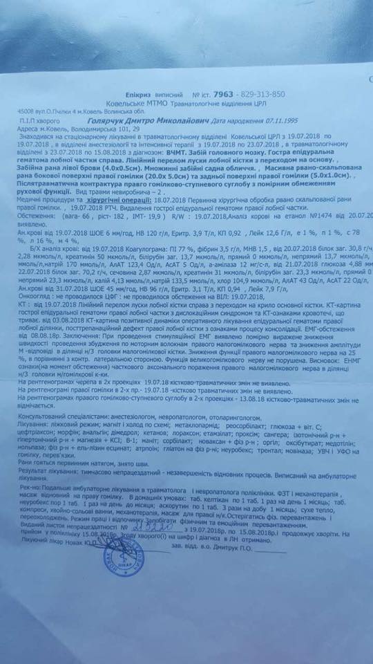 «Всеукраïнська спiлка учасникiв бойових дiй «Побратими Украïни» з Ковеля просить небайдужих допомогти учаснику АТО Голярчуку Дмитру, який проходив службу в 101 окремiй бригадi. Дмитру терміново треба зібрати 20 000 грн. на пластину, щоб закриту частину черепа під час операцiї», - йдеться у дописі.