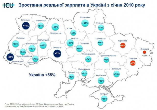 Реальні зарплати українців зросли на 25%-72% починаючи з 2010 року.