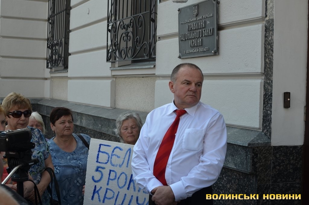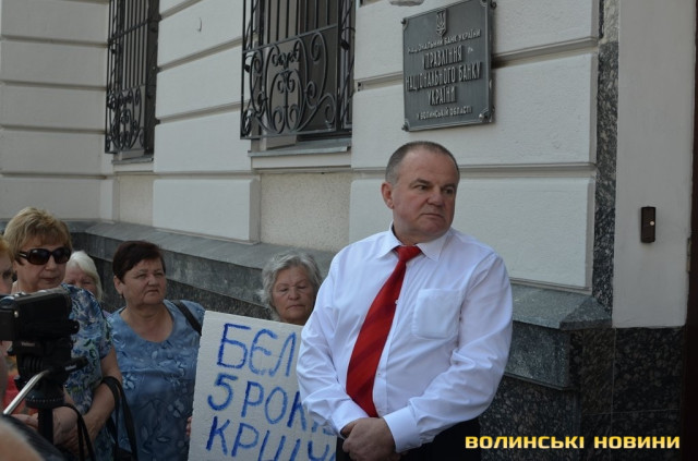 До пікетуальників відразу вийшов начальник Управління Національного банку України у Волинській області Олександр Бєлік, який заявив, що вже наступного тижня може бути прийняте таке рішення.