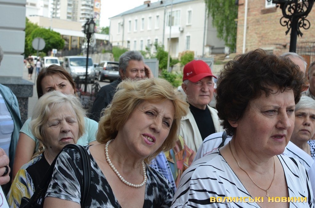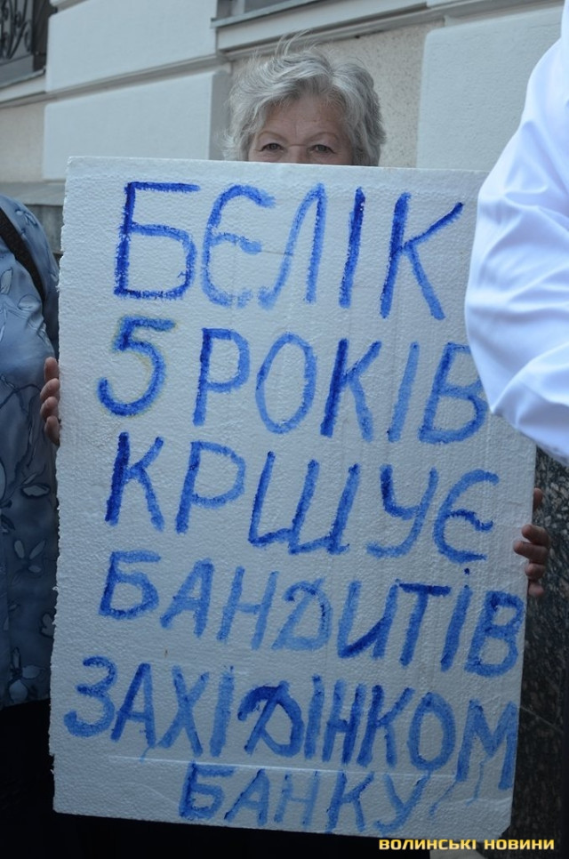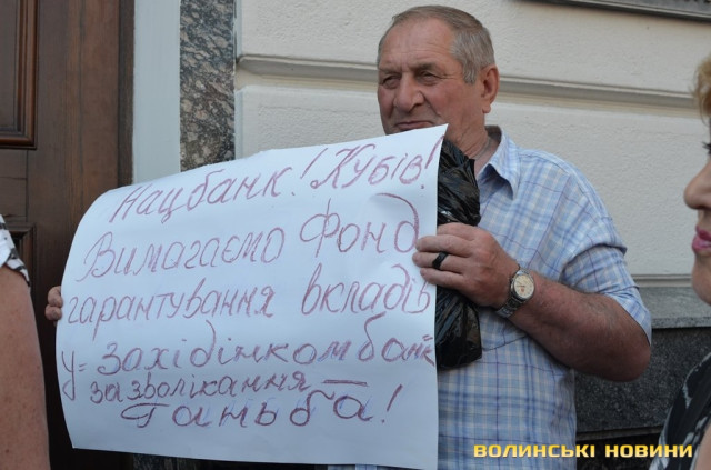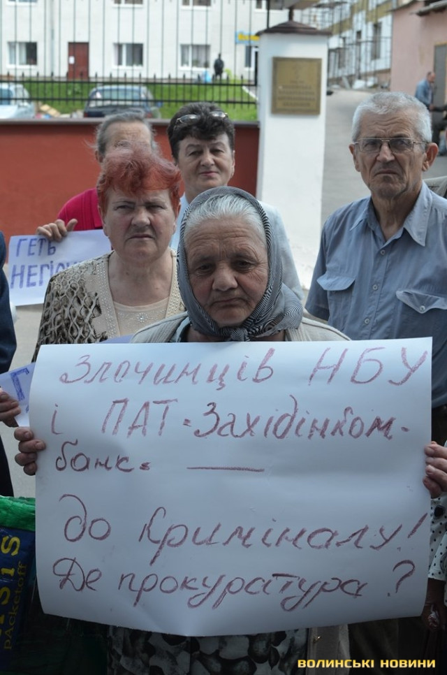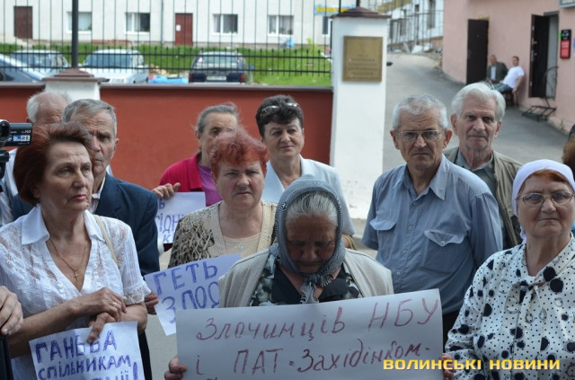 Черговий етап епопеї з «Західінкомбанком», який може стати фінальним, відбувся сьогодні, 21 травня. Ошукані вкладники зібрались поблизу приміщення волинської філії Національного банку України з вимогою визнати ПАТ «Західінкомбанк» неплатоспроможним.